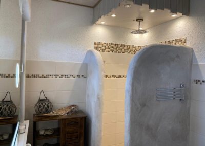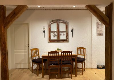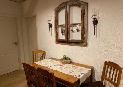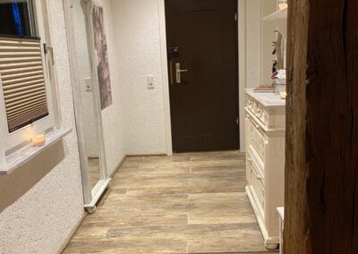 Bei der Einrichtung setzen wir auf einen Mix aus neu und hochwertig auf der einen Seite, (neuer Kühlschrank, Herd, Geschirrspüler, Mikrowelle, neue, hochwertige Armaturen in Küche und Bad, Parkett, komplett neue Stromversorgung, neue Wasserversorgung) und auf der anderen Seite gebrauchten, teils aus dem Haus übernommenen, teils zugekauften Gegenständen, die wir im Shabby-chic-style aufgearbeitet haben. (Die Bilder sprechen hoffentlich für sich)