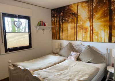 Die Befahrbarkeit wurde hergestellt und anschließend ein Carport errichtet. Die Bäume des Gartens wurden beschnitten, teilweise gefällt und in viel Kleinarbeit ansehnlich und ansprechend hergerichtet. Mittlerweile haben wir, auch dank unseres befreundeten Landwirtes neun große Trecker-Anhänger voll mit Laub, Geäst und anderem Grünschnitt abtransportiert. Außerdem wurde der rundum verlaufende Holzzaun erneuert, so dass Sie, sollten Sie mit Hund oder Kind anreisen, sich vollkommen entspannt zurücklehnen können. Heute sitzen wir auf unserer neu errichteten Terrasse und hören außer das Vogelgezwitscher einfach nur NICHTS. Sehen können Sie unterdessen immer wieder diverse Eichhörnchen, die unseren Garten als Futterstelle kennen (auch Sie können in Ihrem Urlaub füttern – das Futter steht kostenfrei bereit) Außerdem befindet sich in unmittelbarer Nähe des Hauses, teilweise genau über uns, die Einflugschneise der Kraniche bei Ihrer Rückkehr aus dem Winter. Rehe auf dem Feld sehen wir in der Regel ebenfalls täglich. Kommen Sie runter, genießen Sie die Aussicht und tanken Sie neue Energie und Kraft. Wir haben es uns zur Aufgabe gemacht, dass Sie sich hier wohl fühlen, einfach so…Außerdem möchten wir Ihnen heute bereits Lust machen, auf unseren Sun-downer-Steg (Sonnenuntergangs-Steg), der Sie zur zwischen zwei Bäumen gespannten Hängematte leitet, auf der in aller Ruhe den Sonnenuntergang genossen werden kann.